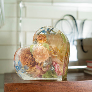 The Everlasting Heart is a handmade resin keepsake, designed to preserve flowers from weddings, funerals, anniversaries, and other special occasions in a stunning heart-shaped display. Each heart is carefully crafted using your real flowers, encased in high-quality resin for a one-of-a-kind floral heirloom.